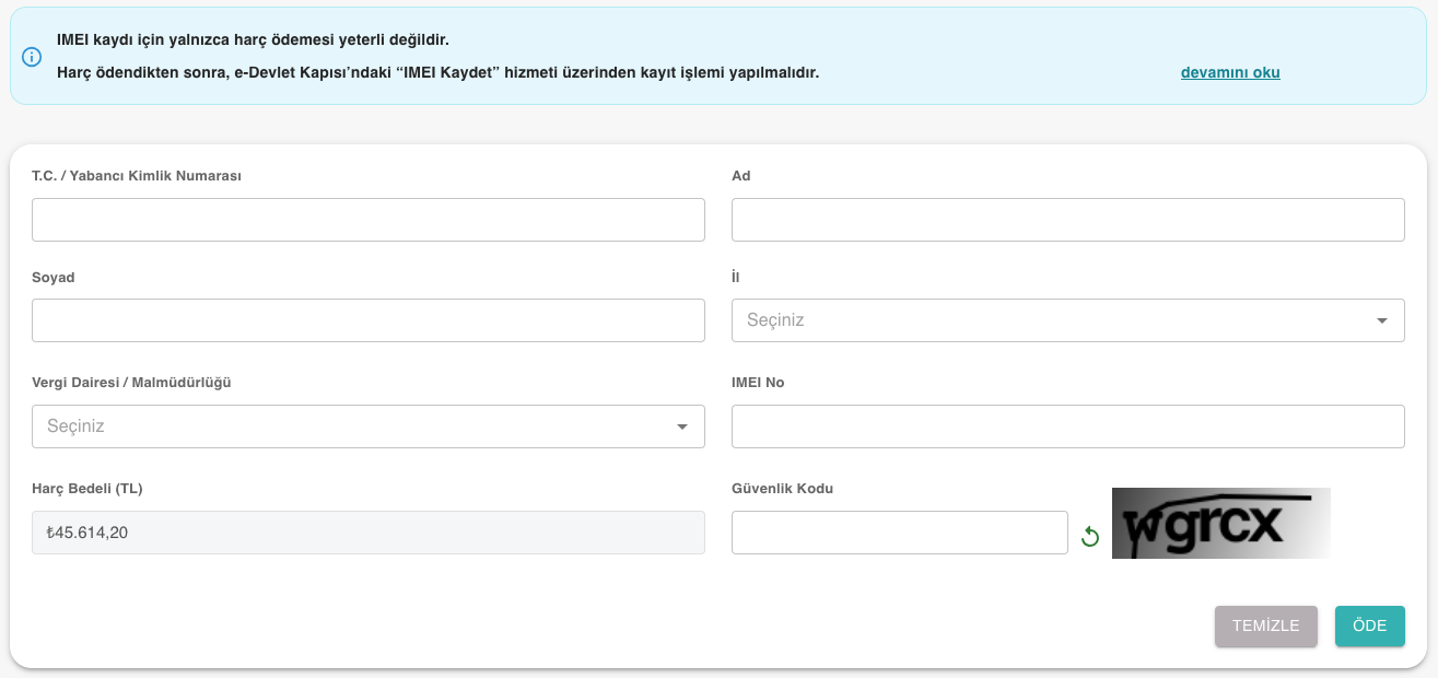 If you have any questions about IMEI registration, you can contact the Turkish Ministry of Treasury and Finance. Contact your local tax office or BTK at 120 or 0 (312) 294 72 00.